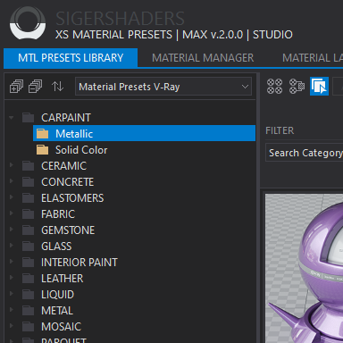 SIGERSHADERS™ XSMP от Siger Studio для 3ds Max является продолжением известного семейства плагинов: V-Ray Material Presets Pro (VMPP), Corona Material Presets Pro (CMPP) и Material Repository Pro (MRP).