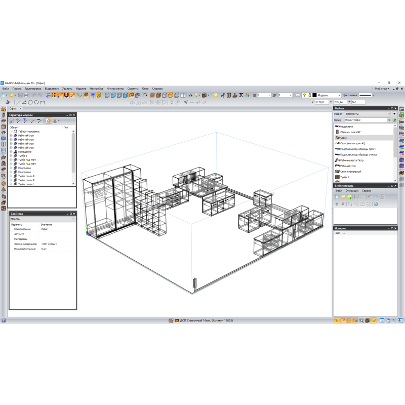 Базис-мебляр - основний модуль системи БАЗІС. Він призначений для створення виробів корпусних меблів будь-якої складності, з можливістю автоматичного отримання повного комплекту креслень та специфікації. Застосування модуля Базис-Мебельщик дозволяє скоротити час проектування та технологічної підготовки виробництва виробів у 10-15 разів у порівнянні з ручною роботою за значного скорочення кількості суб'єктивних помилок.