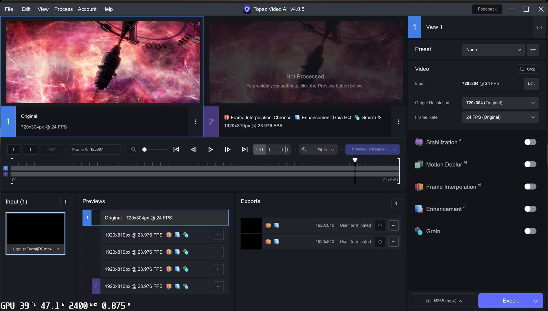Створіть нові кадри з тонкого AI-r. Підбирайте камери з різною частотою кадрів або створюйте уповільнений рух, не змінюючи налаштувань камери. Моделі Apollo і Chronos створюють нові рамки, щоб зробити все надзвичайно гладким.